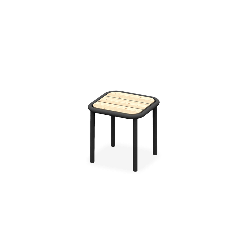 Jakkaran runko on valmistettu teräksestä ja taso kotimaisesta lehtikuusesta, joten se sopii ulkokäyttöön loistavasti ja kestää vaihtelevia sääolosuhteita. Puuosat on saatavilla eri sävyihin kuullotettuna, sekä rautasulfaatti- tai UV-suojauksella.